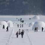 会場にはイグルーや氷上露天風呂があります。冬の然別湖を楽しむメニューが多数用意されています。
