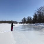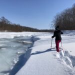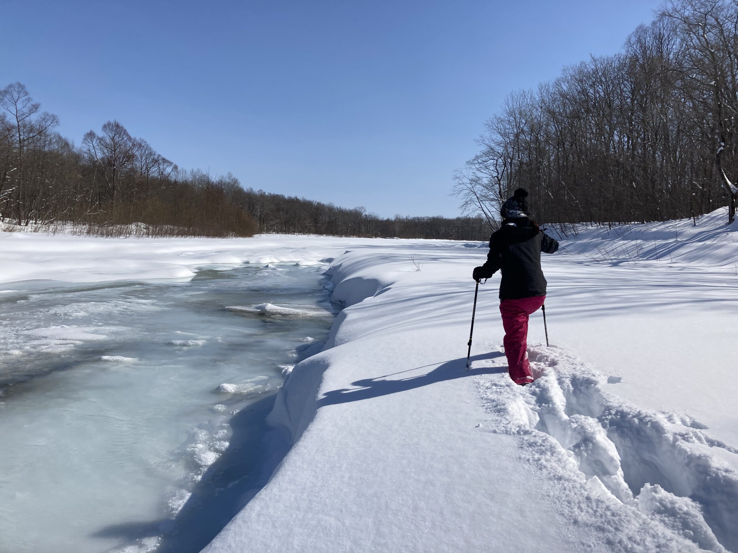 川沿いの河畔林をスノーシューでハイキングしながら川まで散策します。