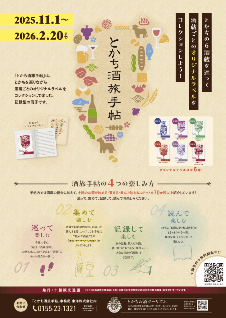 とかちを巡りながら酒蔵ごとのオリジナルラベルをコレクションして楽しむ、記録型の冊子です。