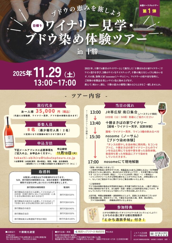 「ブドウの恵みを旅しよう 〈日帰り〉ワイナリー見学・ブドウ染め体験ツアー」